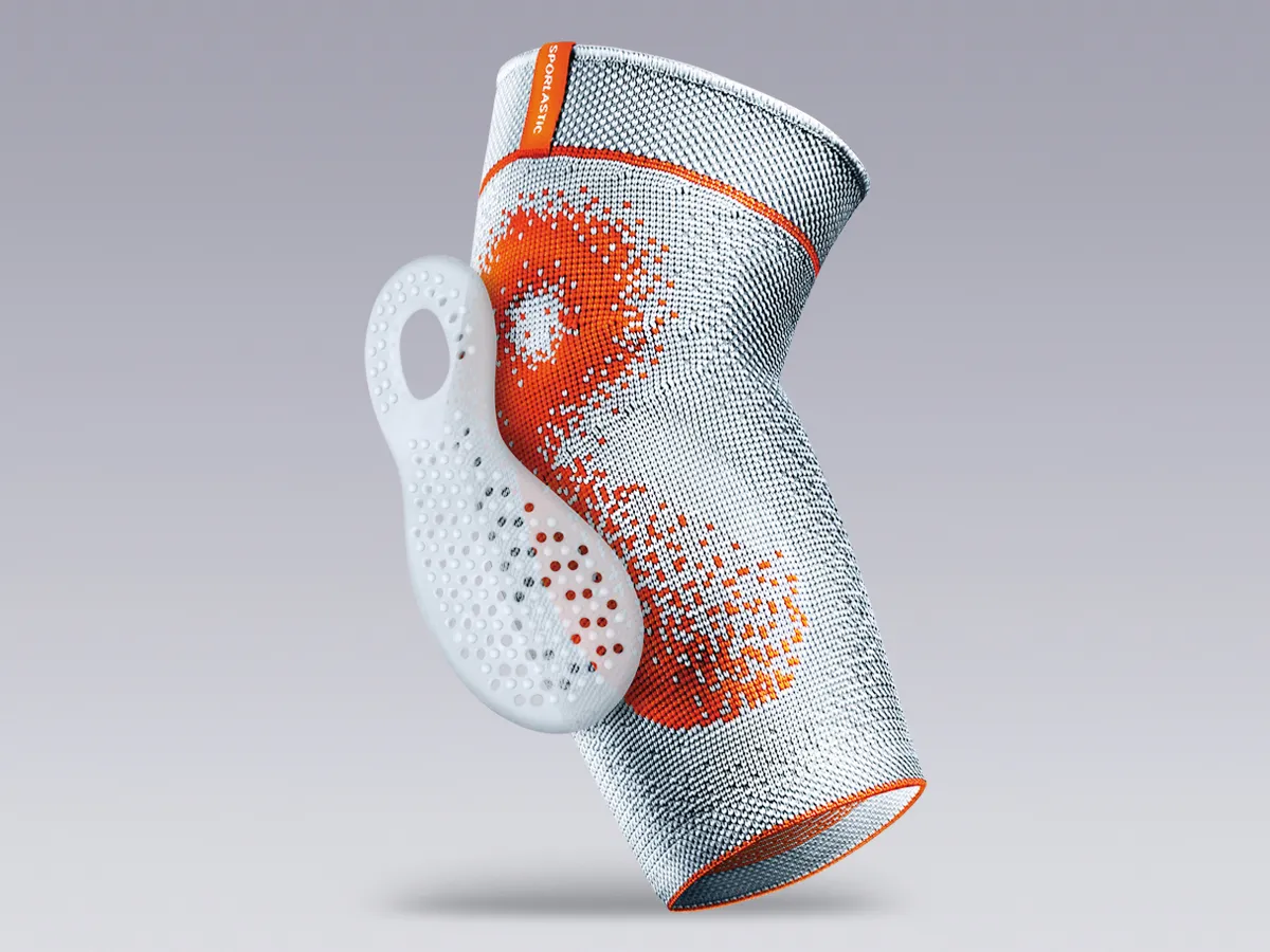 An innovative stretch zone ensures a perfect fit even during movement. In addition, the highly elastic comfort zone allows a wrinkle-free fit in the area of the elbow. A soft, very thin and pressure-reduced bandage edge allows a high wearing comfort. The SPORLASTIC AIR-MATRIX silicone pad is an anatomically shaped and nubbed silicone pad for stimulation and friction massage. A QR code in the product packaging leads to exercises accompanying the therapy.
